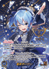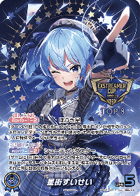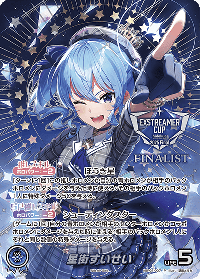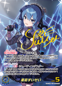 効果: 自分の青ホロメンが相手のセンターホロメンかコラボホロメンにダメージを与えた時に使える:相手のバックホロメン1人にそれと同じ数値の特殊ダメージを与える。