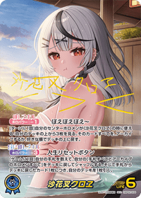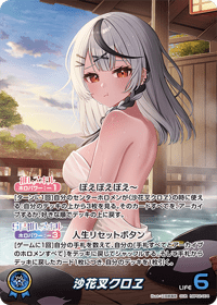 効果: 自分のセンターホロメンが〈沙花叉クロヱ〉の時に使える:自分のデッキの上から3枚を見る。そのカードすべてを、アーカイブするか、好きな順でデッキの上に戻す。
