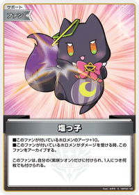 ■このファンが付いているホロメンのアーツ+10。 ■このファンが付いているホロメンがダメージを受ける時、このファンをアーカイブする。 このファンは、自分の〈紫咲シオン〉だけに付けられ、1人につき何枚でも付けられる。