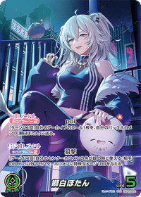 効果: 自分のセンターホロメンの色が緑の時に使える:相手のDebut以外のセンターホロメンに特殊ダメージ100を与える。