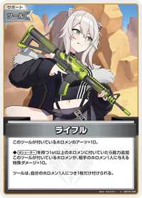 このツールが付いているホロメンのアーツ+10。 ◆#シューターを持つ1st以上のホロメンに付いていたら能力追加 このツールが付いているホロメンが、相手のホロメン1人に与える特殊ダメージ+10。 ツールは、自分のホロメン1人につき1枚だけ付けられる。