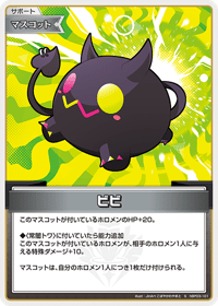 このマスコットが付いているホロメンのHP+20。 ◆〈常闇トワ〉に付いていたら能力追加 このマスコットが付いているホロメンが、相手のホロメン1人に与える特殊ダメージ+10。 マスコットは、自分のホロメン1人につき1枚だけ付けられる。