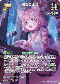 | アーツ1 | かくせいのこより(パワー: 160 (緑+50)) 効果: このホロメンに#こよラボを持つサポートカードが付いている時、自分のデッキから、#こよラボを持つサポートカード1枚を公開し、手札に加える。そしてデッキをシャッフルする。 コスト: 白,無,無 |