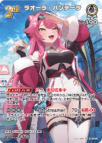 | アーツ1 | Art Streamer(パワー: 70 (赤+50)) 効果: [コラボポジション限定]自分のセンターホロメンが#絵を持つ時、このアーツ+80。 コスト: 無,無,無 |