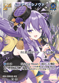 相手のバックホロメン1人に特殊ダメージ20を与える。その後、自分のステージにこのホロメンと異なる色のホロメンがいる時、このアーツ+50。