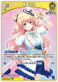 自分のエールデッキから、自分のステージの#5期生を持つホロメン1人と同色のエール1枚を公開し、自分の#5期生を持つホロメンに送る。そしてエールデッキをシャッフルする。
