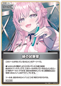 このツールが付いているホロメンのアーツ+10。 ◆1st以上の〈博衣こより〉に付いていたら能力追加 自分のメインステップで、このツールが付いているホロメンのエール1枚をアーカイブできる:自分のお休みしている#秘密結社holoXを持つホロメン1人をアクティブにする。 ツールは、自分のホロメン1人につき1枚だけ付けられる。