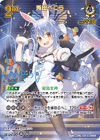 | アーツ1 | ウーサペコラを崇めるぺこ(パワー: 120 (赤+50)) 効果: このホロメンに重なっているホロメン1枚につき、サイコロを1回振れる:出た目の合計数1につき、このアーツ+10。 コスト: 無,無,無,無 |