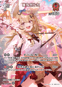 | アーツ2 | 来年も君と見に来たいな(パワー: 70) 効果: このホロメンに付いている〈座員〉1枚につき、このアーツ+10。 コスト: 赤,無,無 |
