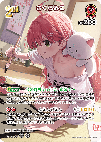 | ギフト | 今のはちょっとね、練習で… 効果: [センターポジション・コラボポジション限定]相手のターンで、自分の〈さくらみこ〉がダウンした時に使える:自分のデッキから、〈み俺恥〉1枚を公開し、手札に加える。そしてデッキをシャッフルする。 |