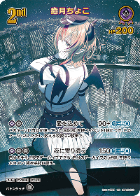 | アーツ2 | 夜に寄り添う(パワー: 150 (青+50)) 効果: 自分の手札2枚をアーカイブできる:自分のアーカイブの#料理を持つホロメン1枚を手札に戻す。 コスト: 紫,無,無 |