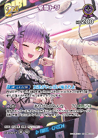 | アーツ1 | ありがとうみんな(パワー: 70 (緑+50)) 効果: 相手のセンターホロメンかコラボホロメンどちらかに、自分のステージの#歌を持つ1stホロメン1人につき、特殊ダメージ20を与える。 コスト: 紫,無 |