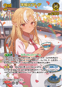 | ギフト | カラフルストリーム 効果: このホロメンがアーツを使った時、このホロメンのエール2枚を自分のバックホロメン1人に送れる。その後、自分のアーカイブの、エールを送られたホロメンと同じカード名の1stホロメン1枚を手札に戻す。 |
