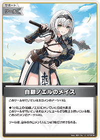 このツールが付いているホロメンのアーツ+10。 ◆1st以上の〈白銀ノエル〉に付いていたら能力追加 このツールが付いているホロメンにエールが3枚以上付いている間、このホロメンのアーツ+20。 ツールは、自分のホロメン1人につき1枚だけ付けられる。