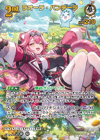 | アーツ1 | 色彩のリナシメント(パワー: 100 (紫+50)) 効果: [センターポジション限定]このターンの間、自分の#絵を持つコラボホロメンのアーツ+50し、そのホロメンのアーツに必要な無色-1。 コスト: 白,無 |