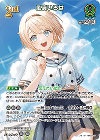 | ギフト | 伝えたい想い 効果: このホロメンが相手のセンターホロメンをダウンさせた時、自分のこのターンにBloomした〈風真いろは〉1人を、自分の手札のホロメンを使って、もう1回Bloomできる。 |