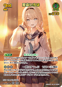 | アーツ1 | 一緒にすてっぷ(パワー: 160 (白+50)) 効果: 自分の推しホロメンが〈風真いろは〉で、自分のコラボホロメンがいるなら、このアーツ+40。さらに、このホロメンがBuzzホロメンからBloomしているなら、このアーツダメージは軽減されない。 コスト: 緑,無,無 |