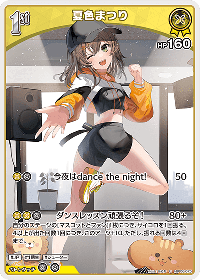 自分のステージの[マスコットとファン]1枚につき、サイコロを1回振る。4以上が出た回数1回につき、このアーツ+10。ただし、振れる回数は4回まで。