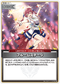 自分のデッキを2枚引く。その後、自分のライフが4以下なら、自分のこのターンにDebutホロメンからBloomした1stホロメン1人を、自分の手札のホロメンを使ってもう1回Bloomできる。 LIMITED:ターンに1枚しか使えない。